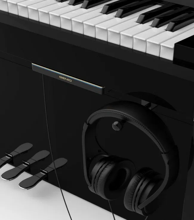 Waarom dit systeem? De Genio Frontier is het topmodel binnen Genio en is bedoeld voor spelers die méér willen dan alleen silent: verbinden en bedienen met tablet, integratie met Youtube voor bijvoorbeeld les via internet.